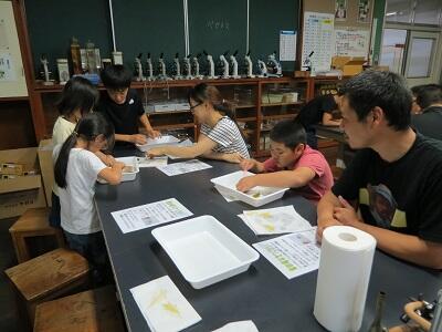 少し前のことになりますが、9月21日(木)に細野小家庭教育学級(ひなもり学級)と細野中家庭教育学級(さくら学級)で親子科学実験教室を本校の理科室で行いました。