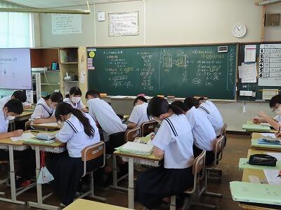 来週の火曜日10日から、3日間にわたり第2回定期テストが行われます。写真は授業中の様子です。テスト対策プリントに取り組んだり、創作活動を行ったり、教え合い学習を行うなど様々な様子が見られました。テストは自分の学力の現状を把握し、苦手なところを克服するために行うものです。生徒の皆さん、テストに向け万全の準備を行いましょう。