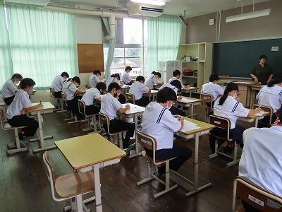 本日から第2回定期テストが始まりました。今日のテストは、1年生は技術家庭・英語、2年生は数学・社会、3年生は理科・国語でした。どの学年の生徒も集中して取り組んでいました。