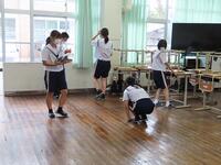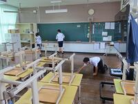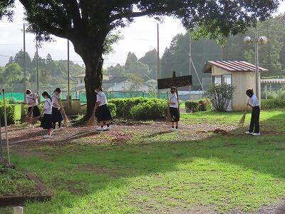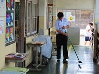 湿度が高く、少し体を動かすと汗をかいてしまう天気ですが、生徒たちは清掃活動を頑張っています。わずか10分間の掃除ですが、10分あればかなりきれいにすることができます。自分たちの学校を自分たちできれいにする、これも日本の伝統だと思います。
