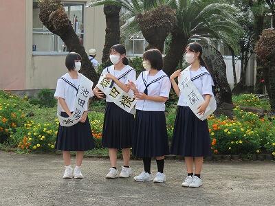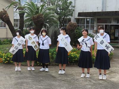 朝のあいさつ運動を兼ねて選挙運動を行っています。各候補者がたすきをかけてあいさつをしています。25日(水)までが選挙運動期間です。悔いのないよう取り組んでほしいものです。