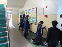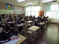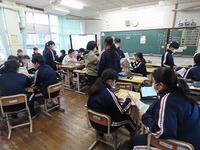 本日は、本校の伝統的行事である「根性行進」を実施します。1時間目はフリー参観として保護者の方々に授業を参観していただき、2時間目から4時間目にかけて「根性行進」を行います。学校を出発して、約10km歩きながら同時に美化活動も行います。写真はフリー参観の様子です。