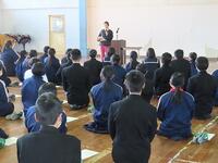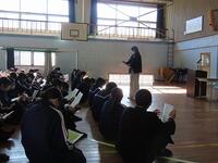 昨日の12月19日(木)に新入生説明会を行いました。細野小学校6年生と保護者の皆様方にお越しいただき、寒い中ではありましたが説明会を開催することができました。ご多用な中お越しいただきました保護者の皆様方、ありがとうございました。説明会では校長あいさつの後、学校生活について生徒会役員が話をしました。その後3年生による合唱の発表を行い、学習面や生活面及び保健面について本校職員から説明を行いました。約50分の説明会でしたが、6年生は最後までしっかり話を聞いてくれました。来年の4月が楽しみです。皆さんの入学を心から歓迎します。