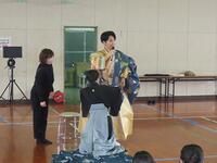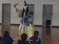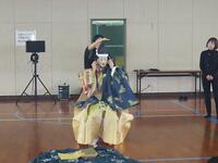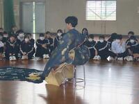 本日の3・4時間目に鑑賞教室を行いました。講師は観世流シテ方能楽師の梅若紀佳様と梅若志長様です。わざわざ東京からお越しいただきました。鑑賞教室は毎年行っていますが、今年度は「体験から学ぶ初めての能【敦盛】」です。お能は、600年以上の歴史をもつ日本の伝統的な舞台芸術です。その特徴は、能面を用いることや、歌や舞、演技が一体となった歌舞劇的な表現にあります。今日は『平家物語』を題材に、世阿弥が作ったとされる能【敦盛】を中心に学びました。かつて、武将たちが愛したお能は、観るだけではなく、自分たちでも演じて楽しむものだったそうです。今回の鑑賞教室では、講師あいさつの後に、「お能とは?」「能装束着付けの鑑賞」「能【敦盛】解説・楽しみ方レクチャー」「能【敦盛】の一部分を鑑賞」「謡体験」「すり足・そのほか型の体験」を行いました。子どもたちは初めての体験に戸惑いながらも楽しく鑑賞することができました。講師の先生方、様々なお世話をいただいた細野小学校の上畠先生、本日はありがとうございました。