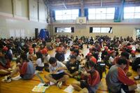 11月9日(日)、西小林小学校、幸ヶ丘小学校、西小林中学校の3校合同「令和7年度地域ぐるみ防災事業」を西小林中学校で行いました。AからDの4つのブースに分け、水消火器体験や煙体験、ロープワーク、担架づくり、段ボールベッド作成、心肺蘇生法、AED研修、親子で応急処置が実施されました。小中学生を、縦割りの40班に分け、中学生のリーダーが小学生をリードする形での体験でした。体験の後は、持ち寄ったお米をにっこばまちづくり協議会婦人部の皆さんや高校生のボランティアの皆さんに炊飯していたき、おにぎりを食べました。どの体験も、実際の災害現場では必要となるものばかりです。実際に体験することで、災害を想定した備えがいかに大切なものかを学ぶことができました。事業実施を主催していただいた、にっこばまちづくり協議会の皆様、西小林中学校区連絡協議会の皆様、消防団の皆様、市災害ボランティアセンター(SVC)の皆様、御池青少年自然の家よりおいでいただいた講師の皆様、小林看護医療専門学校の皆様、本当に多くの方々に感謝申し上げます。