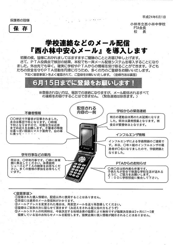 西小林中安心メールについて!!