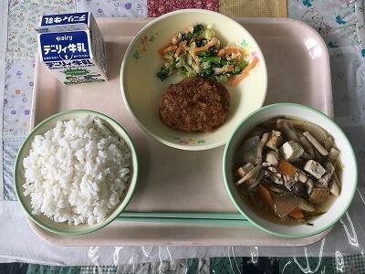 和風ハンバーグ&鶏ゴボウ汁&小松菜のアーモンド和え