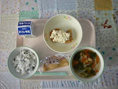 わかめご飯&チキン南蛮&タルタルソース&小松菜のすまし汁&チョコクレープ