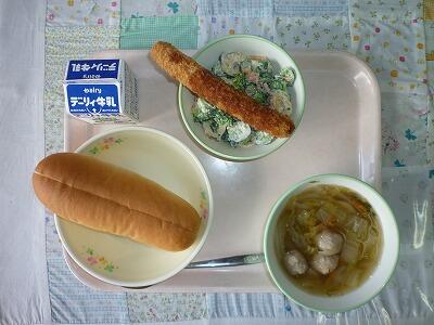 揚げパン&肉団子入り春雨スープ&日向夏ドレッシングサラダ