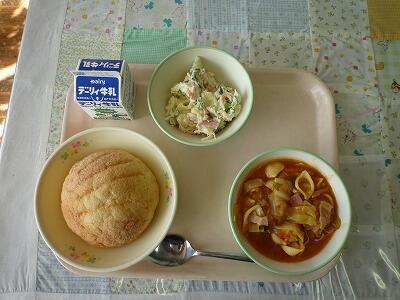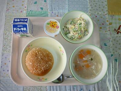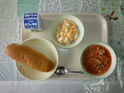 焼きカレーパン&ツナとチーズのサラダ&ブイヤベース&いよかんゼリー