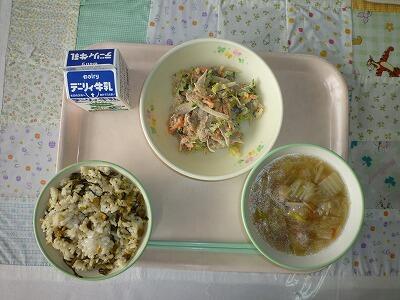 高菜ご飯&肉団子スープ&ゴボウのごまサラダ