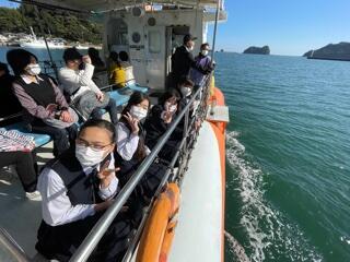 船内では、たくさんの魚を見ることができ、甲板ではトンビを見ることができました。