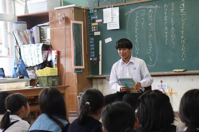 10月23日(木)、2年生生徒が、西小林小学校・幸ヶ丘小学校の児童へ読み聞かせを行いました。
