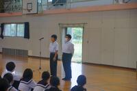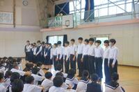 10月24日(金)、令和7年度宮崎県中学校秋季体育大会、駅伝競走大会へ出場する生徒の選手推戴式を行いました。秋季体育大会に出場するのは、陸上競技部と校外卓球クラブの生徒です。駅伝競走大会へは3年生を中心とした有志の生徒が出場します。それぞれ部活とクラブの代表者が、力強く抱負を述べてくれました。それぞれの選手が、西諸県地区の代表選手として頑張ってくれます。