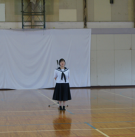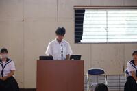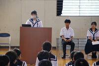 9月17日(水)、生徒集会を行いました。内容は、今年度の学習発表会のスローガン発表と、10月17日(金)に三重県で開催されるU16陸上競技大会に出場する3年生徒の激励でした。今年の学習発表会のスローガンは「灯~だれもが輝ける晴れ舞台~」です。現在、合唱コンクールをはじめ、学年発表の練習も進んでいます。陸上大会出場生徒への激励については、代表生徒2名が音頭を取り、全校で出場生徒にエールを送りました。練習の成果が発揮されるよう頑張ってほしいですね。