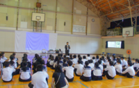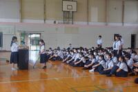 7月1日(火)に無限の命集会で、宮崎県立看護大学教授の川越靖之さんを講師にお迎えし、「健康に関する講話」をしていただきました。内容は、がんや妊娠、性感染症に関するお話でした。がんという病気について、定期検診が大切であることや、HPVウィルスの感染が原因となるガンについては、男女ともにワクチン接種で予防できることについて学びました。このワクチン接種については、宮崎県は特に接種率が低いということでした。積極的な摂取を心掛けるようにしていきたいものです。