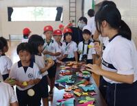 9月5日(金)に、西小林小学校と幸ヶ丘小学校の小学1年生を招待して、本校3年生が準備したいろいろな活動を楽しんでもらいました。活動の目的は、校区内の小学1年生とふれ合うことで地域へ貢献しようとする意識を高めたり、人をもてなすことの大切さを学ぶことです。「お絵描き活動」や「宝探し」、「風船バレー」、「ペットボトルボーリング」のチームに分かれ、小学生に活動を楽しんでもらうことができました。準備したお土産もすごく喜んでもらえて、中学生も大満足の活動でした。西小林小学校と幸ヶ丘小学校の1年生のみなさん、そして先生方にお礼申し上げます。本当にありがとうございました。