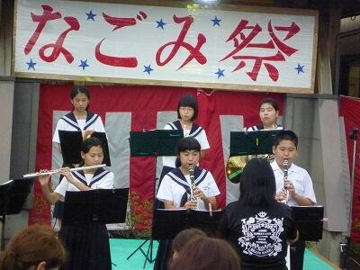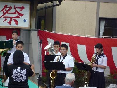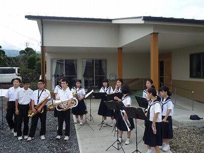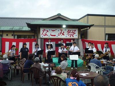 吹奏楽部が近くの高齢者施設「和」の夏祭りに参加しました。県吹奏楽コンクールが終わって、みんながよく知っている曲を選び披露しました。手拍子などもらいながら満足した演奏でした。