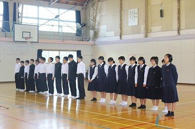 西諸地区中学校総合体育大会駅伝競技の選手推戴式が行われました。昨年度、「躍進賞」を受賞し、今回は、県大会出場を目指しています。1本のたすきにみんなの願いを込めてつないでほしいです。