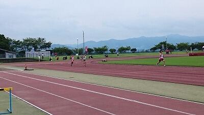 陸上競技は、延岡市の西階陸上競技場で日曜日の午後からあり、気温35度超え湿度も高く、過酷な条件の下行われました。子どもたちは自己ベストを出すなど検討しました。