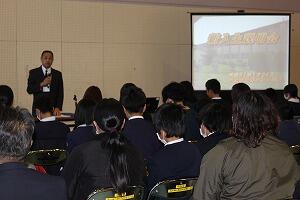 2年生が将来に向けて、志を一文字の漢字で表し決意表明をしました。いろいろな困難に負けず頑張ってほしいものです。その後、元県北部福祉子どもセンター所長 林豊和氏に「自立について」の講演をしていただきました。