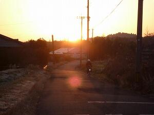 今日は私立高校の入試です。日の出とともに生徒が登校してきます。今日の日の出は、太陽が大きく、はっきり見え、優しい光をさしていました。まるで受験生を応援しているようでした。