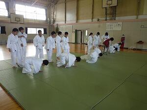 体育では、武道の時間があります。本校では、柔道を選択し、基本から実施しています。1年生は、始めたばかりで、受け身の実技です。初めての体験で、思ったように行きませんでした。
