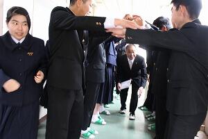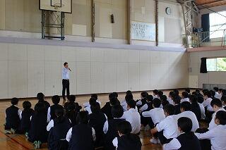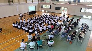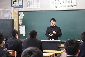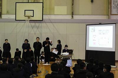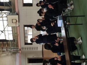 冬休みが終わり学年末最後の3ヶ月が始まりました。各学年代表が、学習面や生活面、受験や進路について発表しました。山之口校長からは、今年は年号も変わる年であり、何かに挑戦してほしいと話がありました。