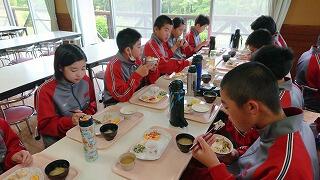 今日の給食は、宮崎牛を使った「こすモ~丼」でした。畜産家で作成した和牛のPR用動画を先週見て、今日の給食の意義を考えながら食べました。今日の給食には、農家の方々がお金を出し合って、230kg・4300食が提供されました。地域の方3名と一緒に食べました。やっぱいり、宮崎牛はおいしい!!ありがとうございました。「めざせ 連続日本一!」