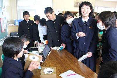 昨年10月より宮崎大学に研修に行っている長野先生が久しぶりに数学科の授業をされました。自身の研修に沿った検証授業で、生徒たちにとって以前と違った授業の流れで戸惑いもあったようですが、時間がたつにつれ和やかな授業になっていました。