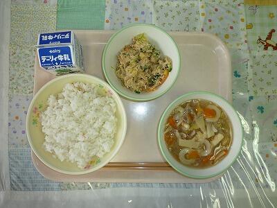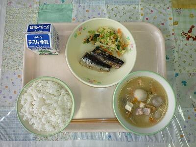 いわしのおかか煮&田舎汁&小松菜のアーモンドあえ
