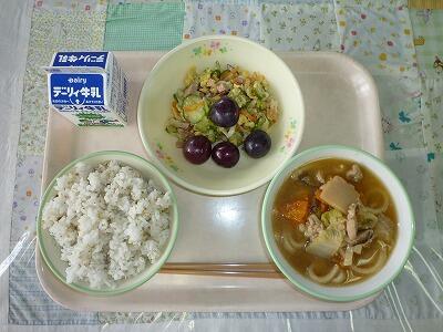 梅ちりご飯&味噌煮込みうどん&生節サラダ&ぶどう