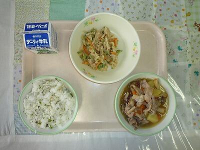 豚肉とさつまいもの煮物&大根のごまサラダ&いりこ菜飯