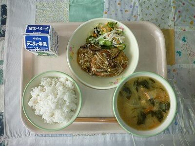 五目味噌汁&ハンバーグきのこあん&糸かまぼこの和え物