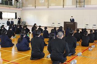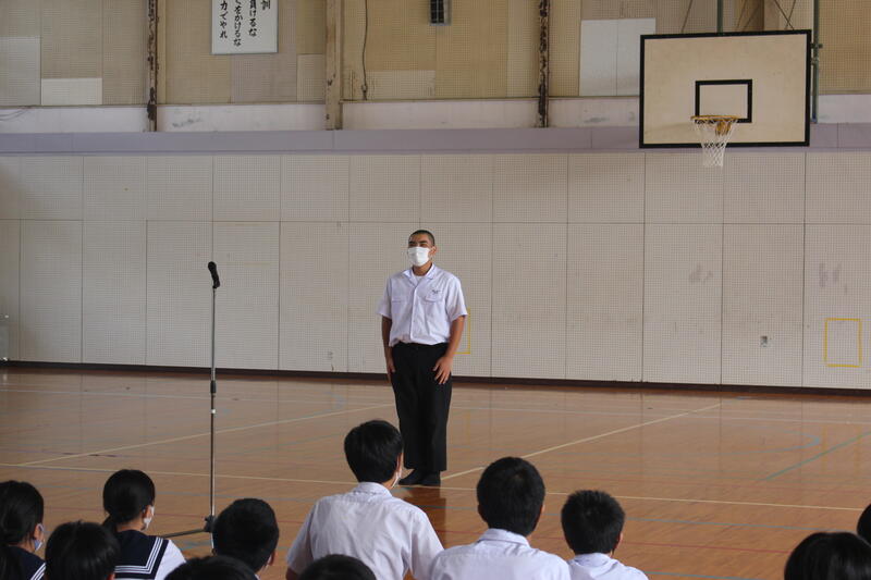 その後、始業式が行われ、3人の生徒が1学期の抱負を発表しました。どの生徒の発表も、昨年度の自分を踏まえ、今年度は、レベルアップするという力強い意志が感じられました。
