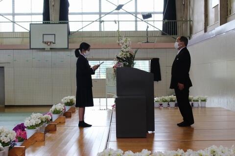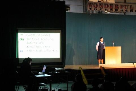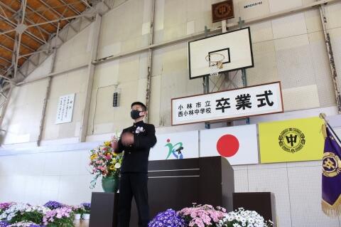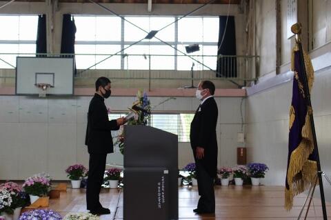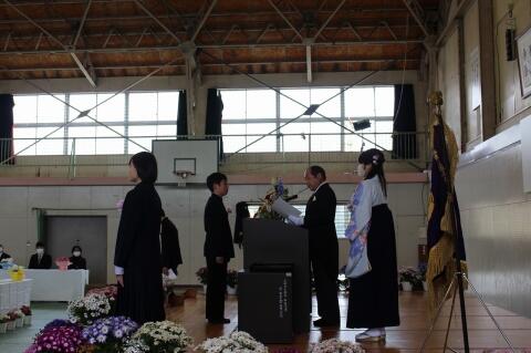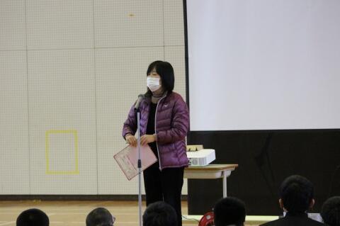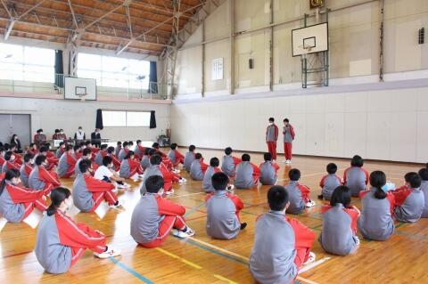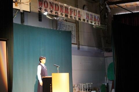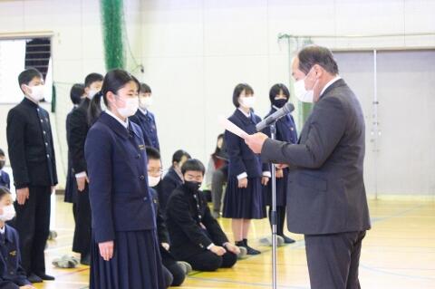 結果発表後、送別行事が行われ1,2年生の代表から3年生への言葉。
