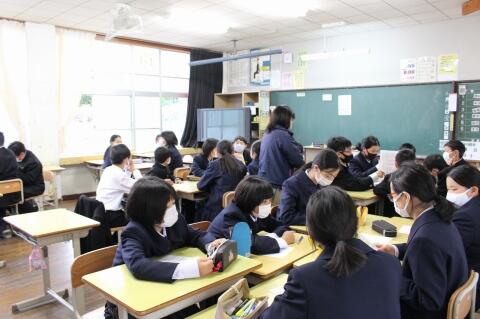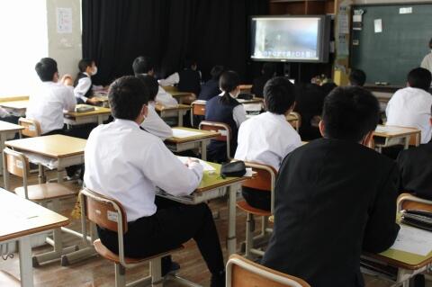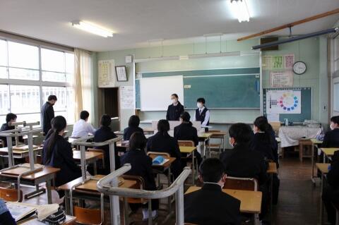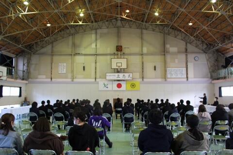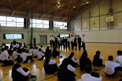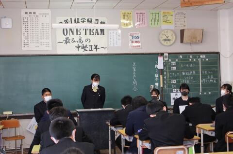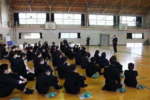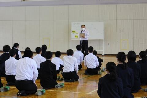 3年生は「進学説明会」を体育館で実施しました。私立高校入試まで100日を切っています。授業や家庭学習に力を緩めることなく頑張ってほしいものです。