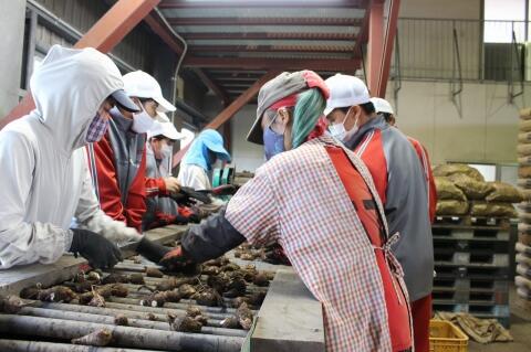 有限会社木村農園さんにご協力いただき、親芋、子芋、孫芋を手で一つずつ分ける作業を体験させていただきました。
