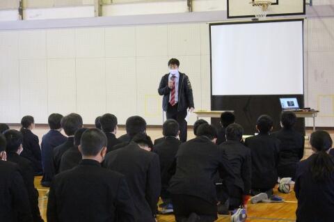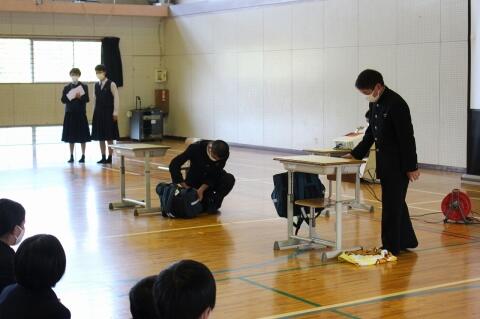消防署の方からは地震や火災が起きたときは中学生の力が必要であり、すすんでお手伝いしてほしい等のお話がありました。