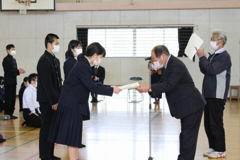 その後、先日行われた“無限の進歩”の満点者の表彰があり、各クラスの代表生徒が賞状を受け取りました。