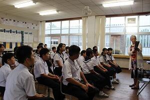 ネット関係のトラブルを未然に防ぐための上手な使い方を学ぶ機会として、LINE株式会社 山本香織 氏をお招きし「インターネットを使うときに気をつけること・考えること」と題して講話をいただきました。ほとんどの生徒がライン等をした経験があり、熱心に参加していました。暑いため熱中症対策として、体育館から教室に変更して行いました。