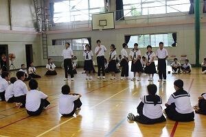 今回は、体育大会前ということで、学年対抗リレーが行われました。前半は、各学年白熱した走りでしたが、徐々に、2年生がトップに立ちそのままゴールしました。3年に続いて、1年生がゴールしました。みんな学級のために精一杯走ったようです。