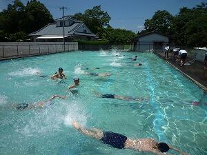 雨の中での水泳です。少し肌寒いようですが、子どもたちは楽しそうに泳いでいました。