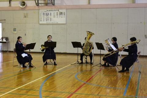 12月25日(土)に新富町文化会館にてアンサンブルコンテストが行われるので吹奏楽部が演奏を披露してくれました。