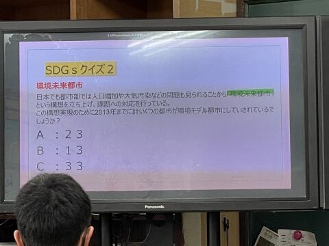 2年生は道徳の授業の一環でSDGs(持続可能な開発目標)についての発表がありました。