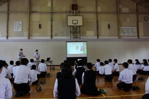 本日6校時に小林こすもす薬局の方をお招きし、体育館で薬物乱用防止教室を行いました。