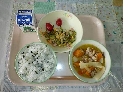 わかめご飯&みそほうと汁&りっちゃんサラダ&ミニトマト