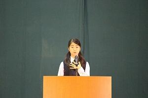 詩吟「桂林荘雑詠諸生に示す」を南薗岳周・南薗岳好夫妻の指導のもと大きな声で発表しました。次に、夏休みにシンガポールにホームステーの体験を発表しました。