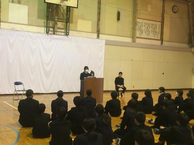 発表の中には「整理整頓」「受験生としての自覚」「目標の設定」など、新学期を過ごす上で大切なキーワードが多くあり、聞いている生徒たちの参考になったようです。