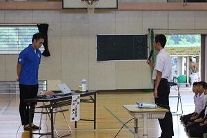 無限の命集会では、生徒会執行部による取り組みについて説明がありました。先生方によるロールプレイングを2つ設定し、演じ、その後、グループに分かれて話し合いました。
